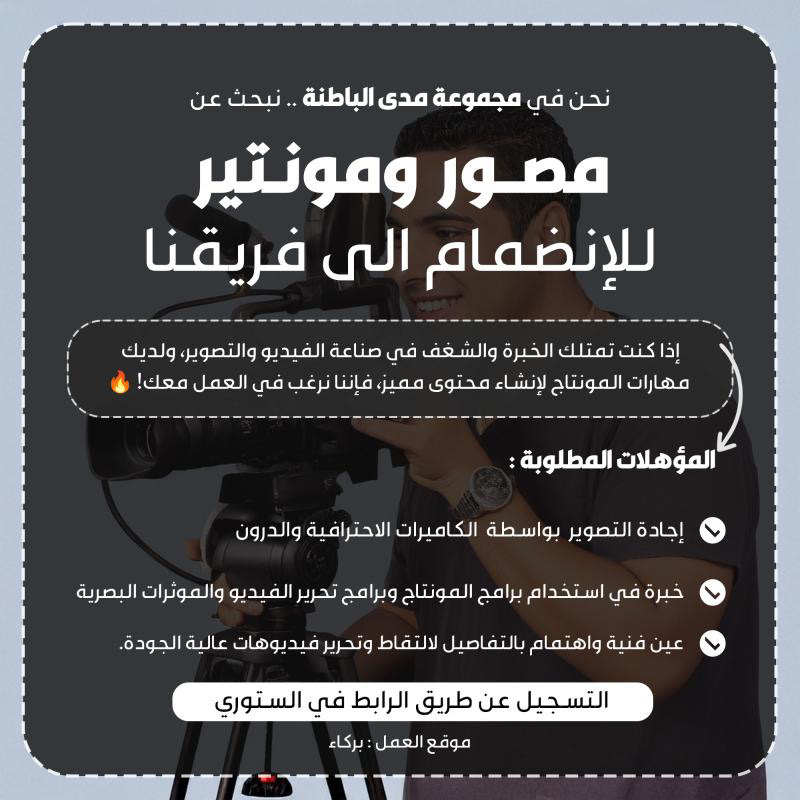 مجموعة مدى الباطنة - وظيفة شاغرة ( مصور ومونتير )