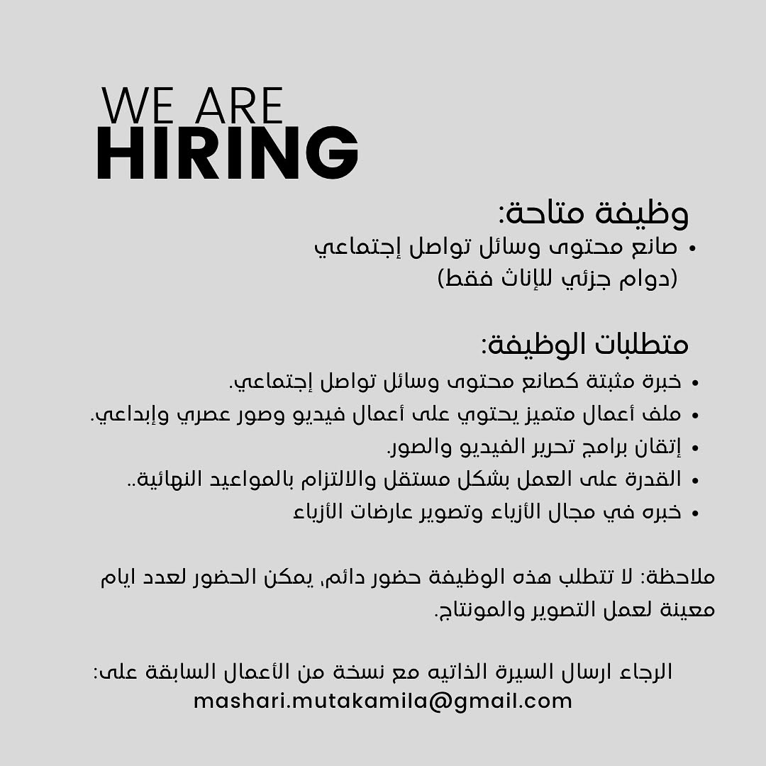 شركة رائدة في مسقط - فرص وظيفية بدوام جزئي ( مصورة + صانع محتوى )