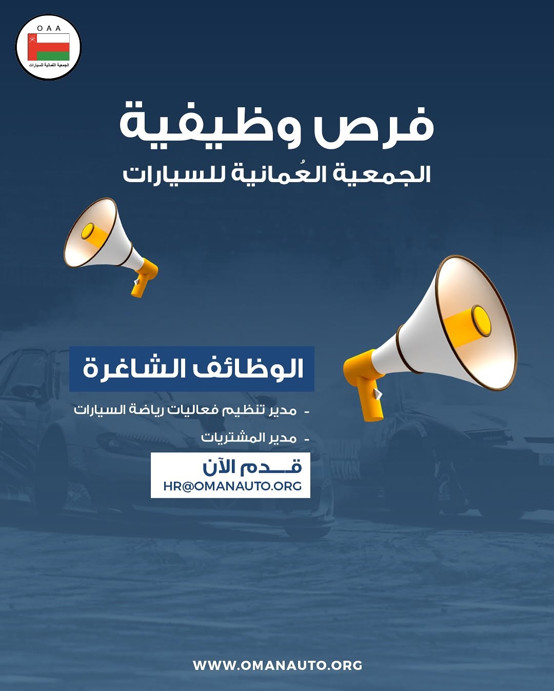 الجمعية العمانية للسيارات - فرص وظيفية ( مدير تنظيم فعاليات رياضة السيارات + مدير المشتريات )