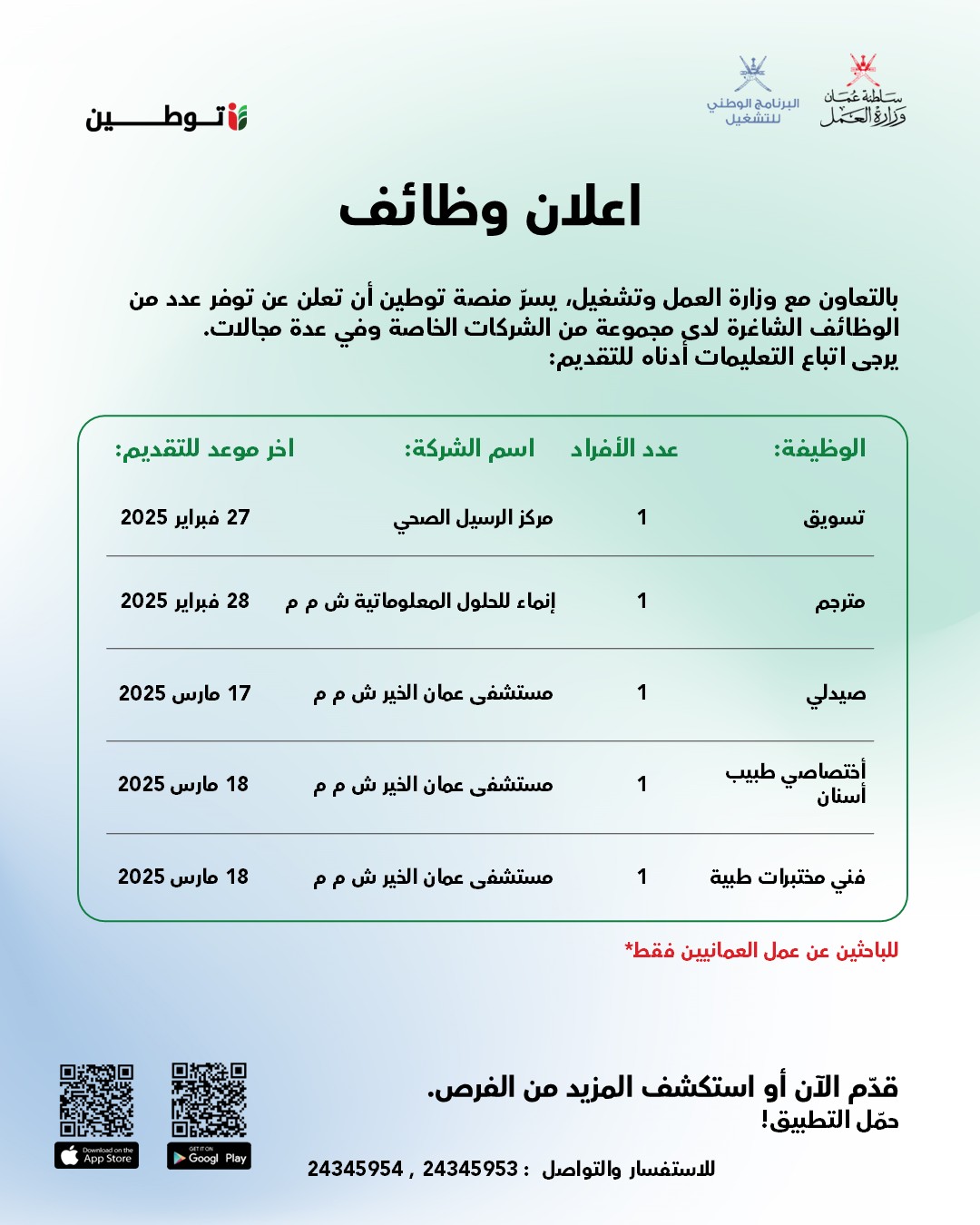 منصة توطين - 25 وظيفة شاغرة لدى مجموعة من الشركات الخاصة وفي عدة مجالات