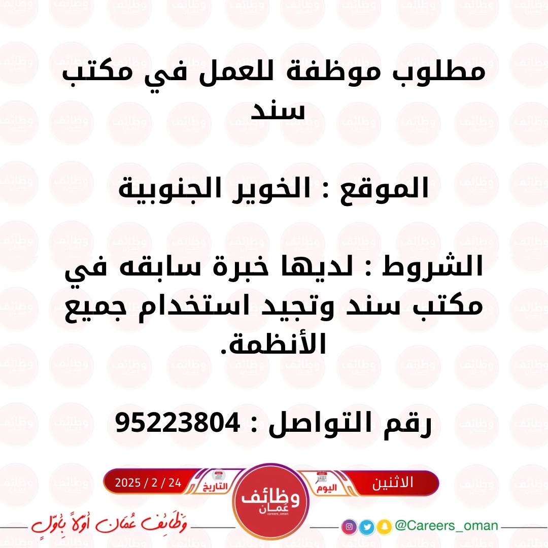 مكتب سند الخوير - وظيفة شاغرة ( موظفة )
