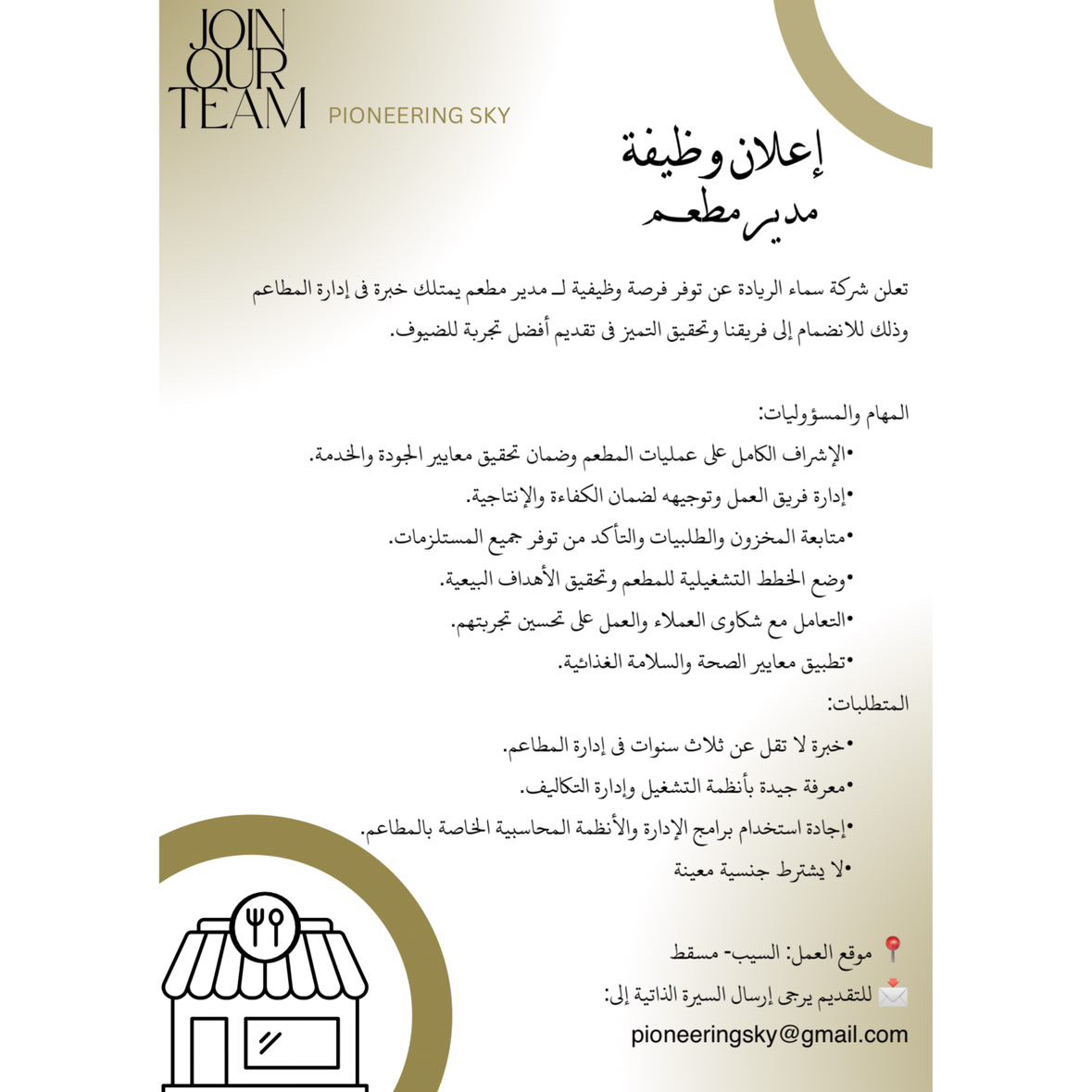 شركة سماء الريادة - وظيفة شاغرة ( مدير مطعم )