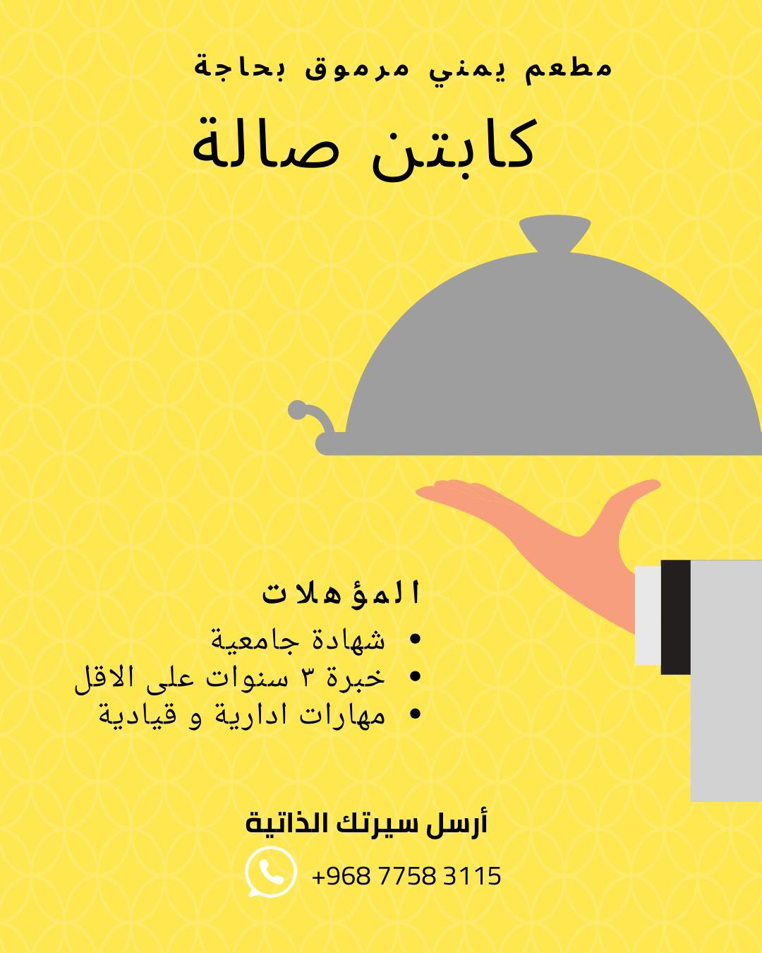 مطعم يمني مرموق في المعبيلة الجنوبية - وظيفة شاغرة ( كابتن صالة )