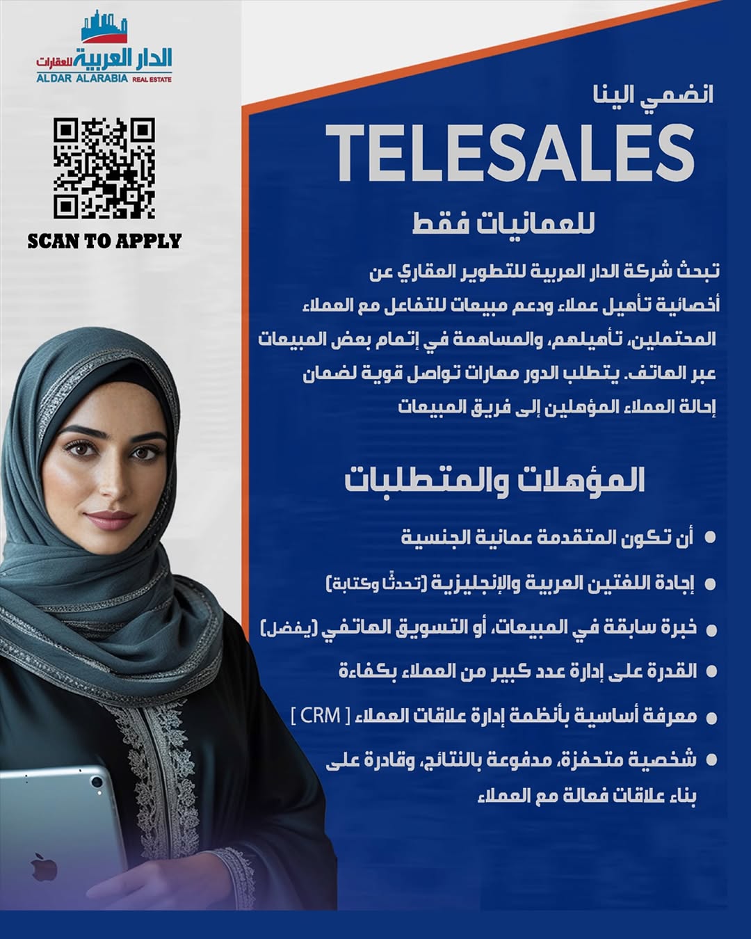 شركة الدار العربية للتطوير العقاري - وظيفة شاغرة ( أخصائية تأهيل عملاء ودعم مبيعات )