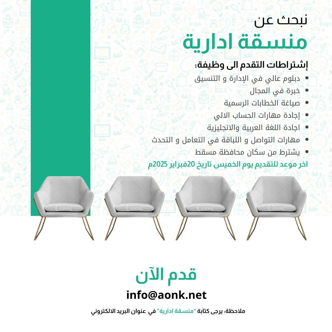 شركة رائدة في مسقط - وظيفة شاغرة ( منسقة ادارية )