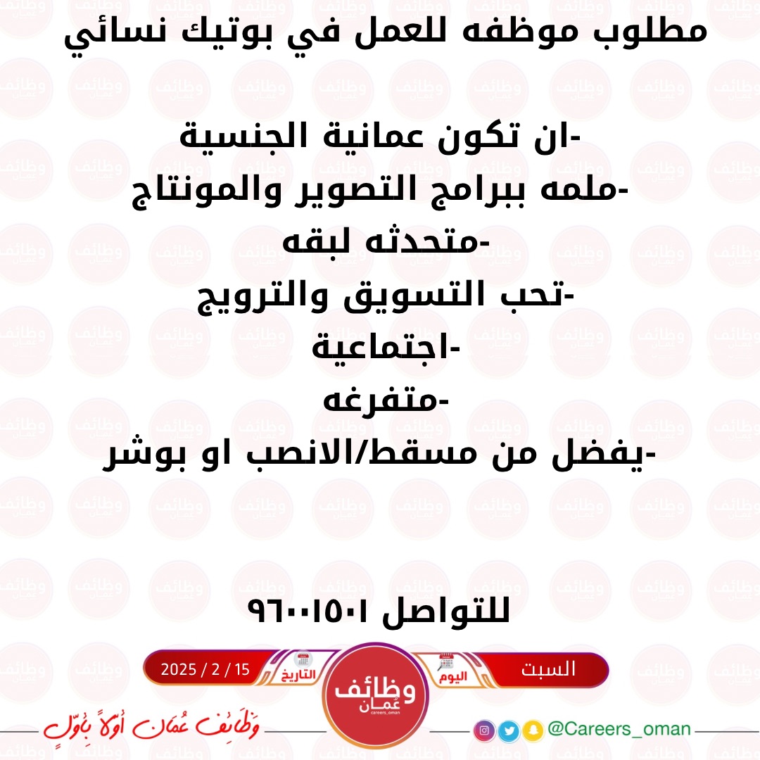 بوتيك نسائي في مسقط - وظيفة شاغرة ( موظفة )