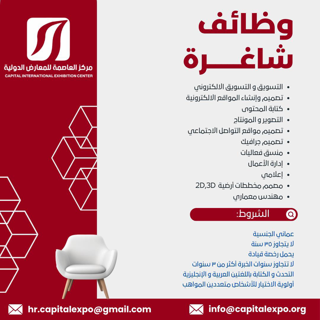 مركز العاصمة للمعارض الدولية - 11 وظيفة شاغرة