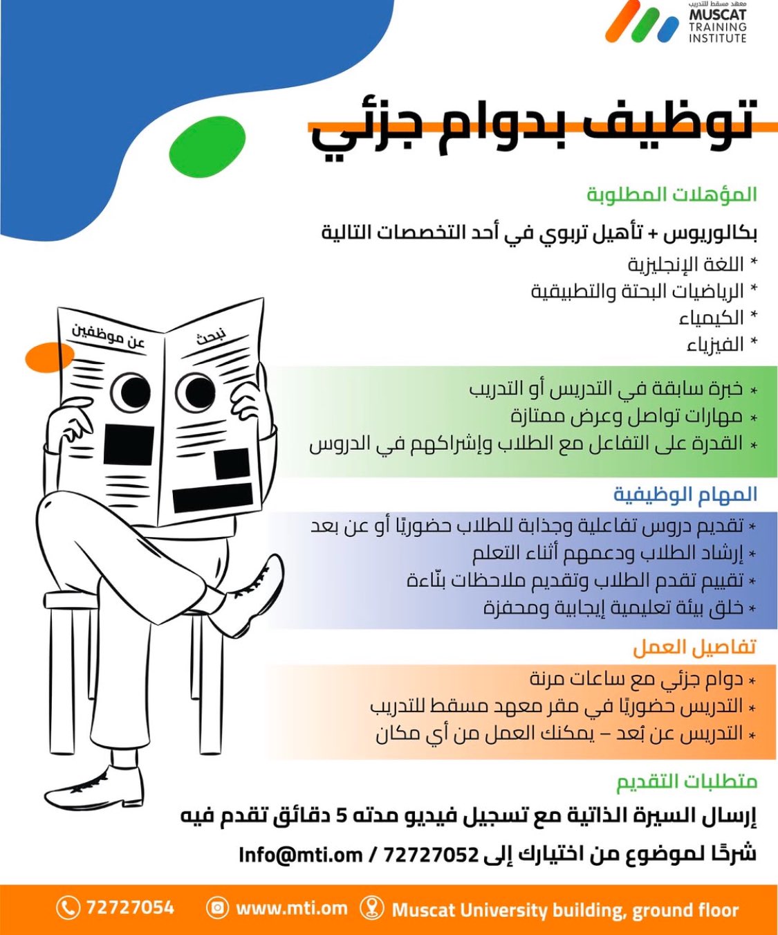 معهد مسقط للتدريب - فرص وظيفية بدوام جزئي