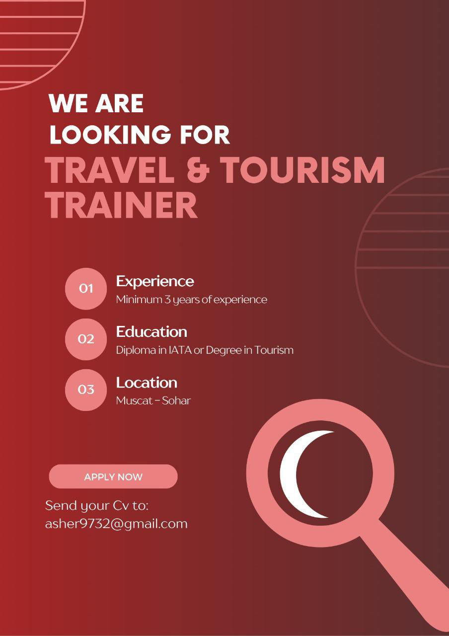 شركة رائدة في مجال السفر والسياحة - فرصة شاغرة ( TRAVEL & TOURISM TRAINER )