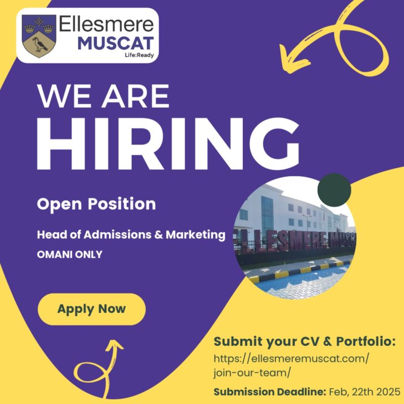 مدرسة Ellesmere Muscat - وظيفة شاغرة ( Head of Admissions & Marketing )