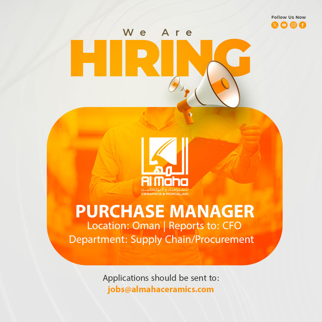 شركة المها للسيراميك والبورسلين في صحار - وظيفة شاغرة ( PURCHASE MANAGER )