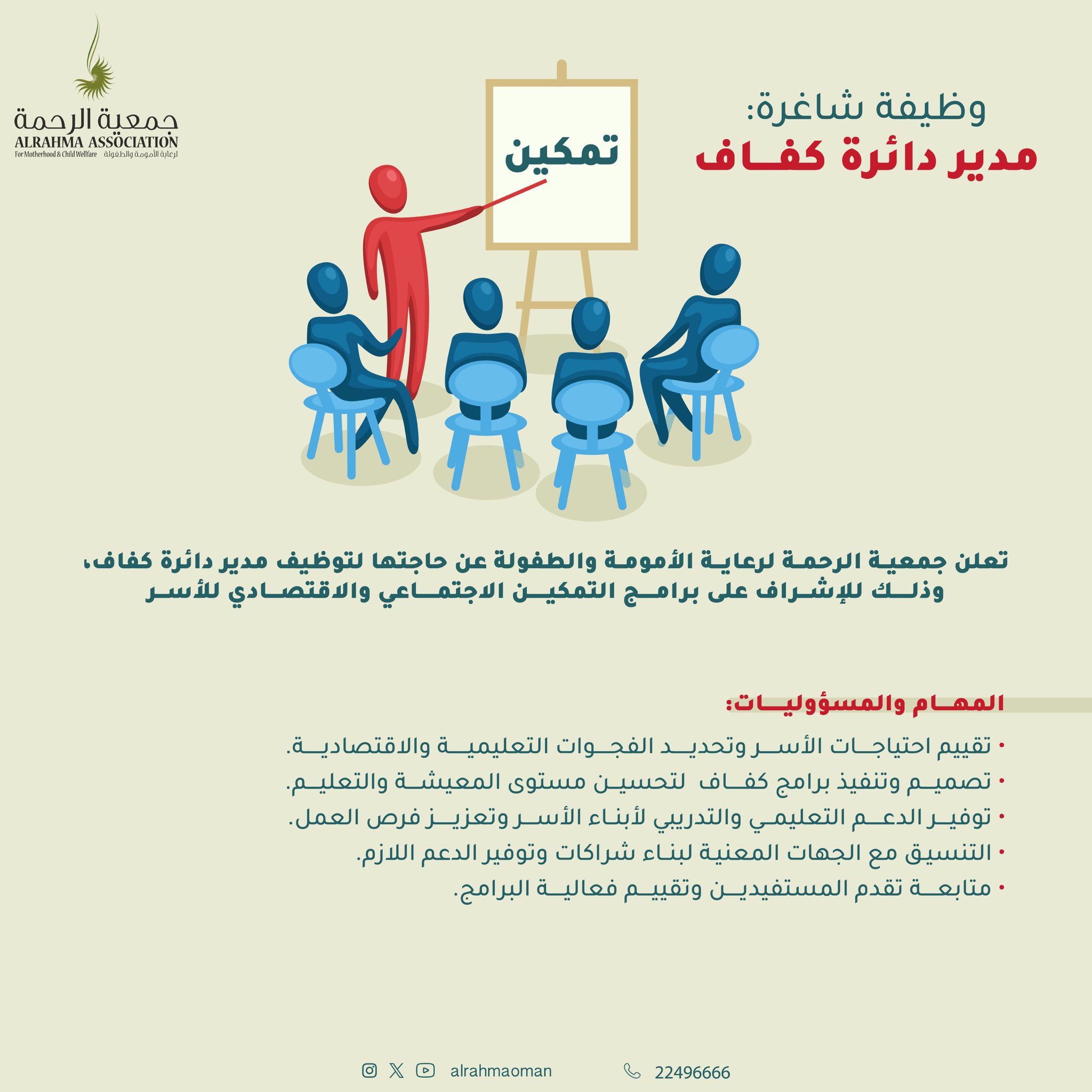 جمعية الرحمة - وظيفة شاغرة ( مدير دائرة كفاف )