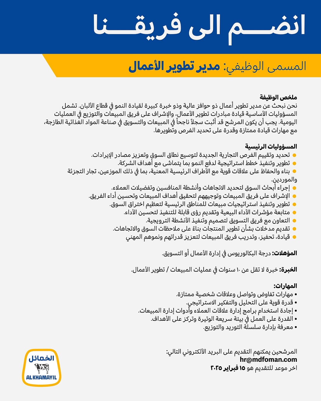 شركة الخمائل - وظيفة شاغرة ( مدير تطوير الأعمال )