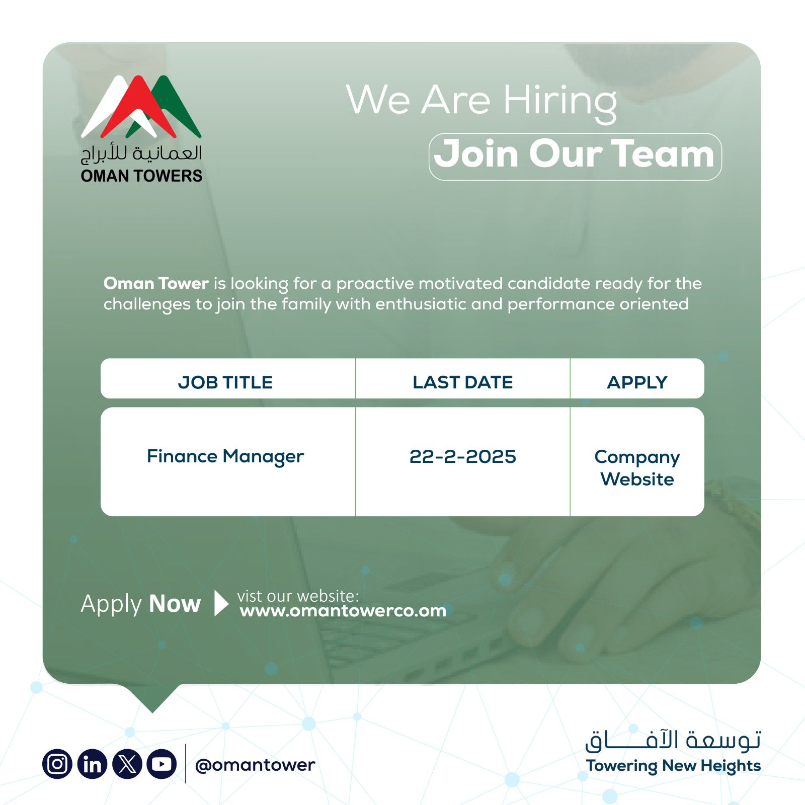العمانية للأبراج - وظيفة شاغرة ( Finance Manager )
