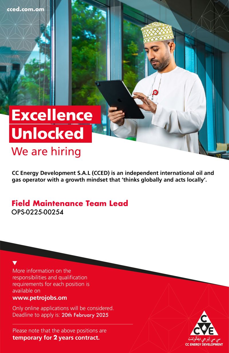 شركة سي سي اينرجي ديفالوبمنت - وظيفة شاغرة ( Field Maintenance Team Lead )