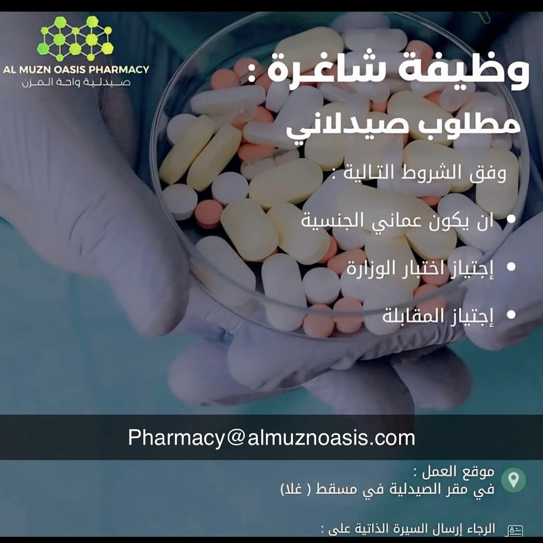 صيدلية واحة المزن في مسقط - وظيفة شاغرة ( صيدلاني )