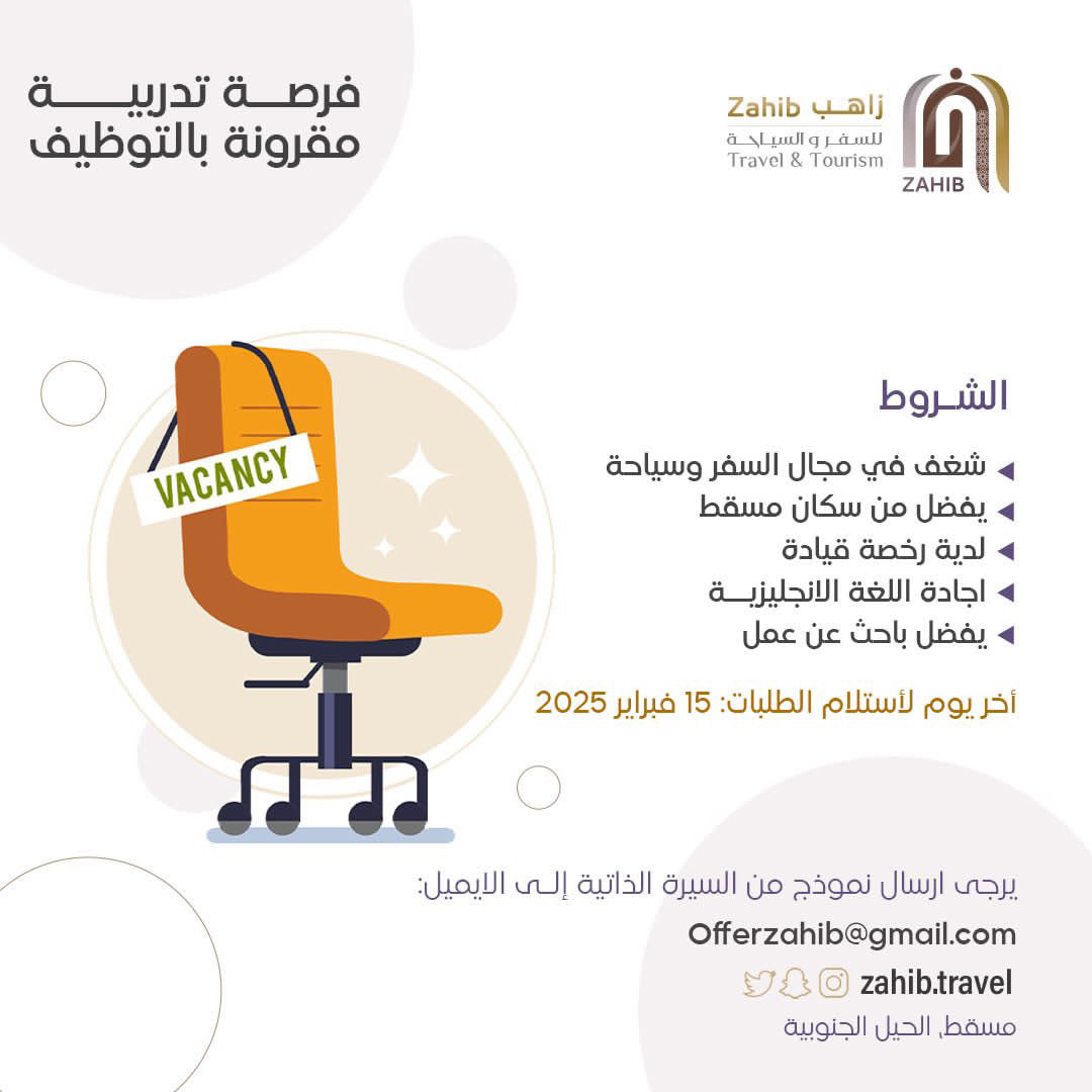 زاهب للسفر والسياحة - فرصة تدريبية مقرونة بالتوظيف