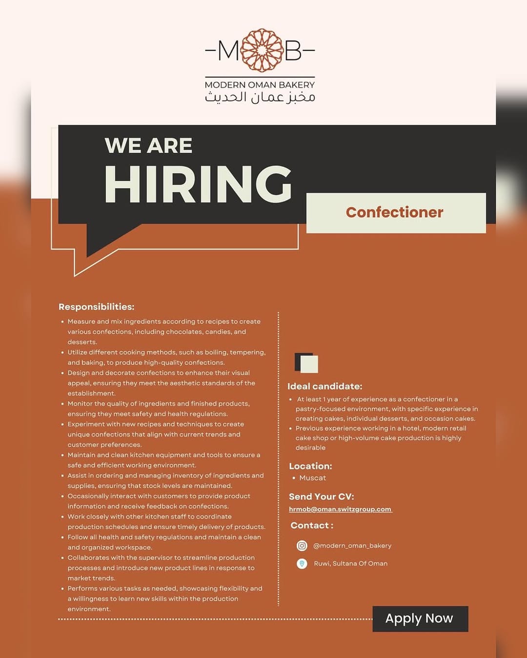 مخبز عمان الحديث في مسقط - وظيفة شاغرة ( Confectioner )