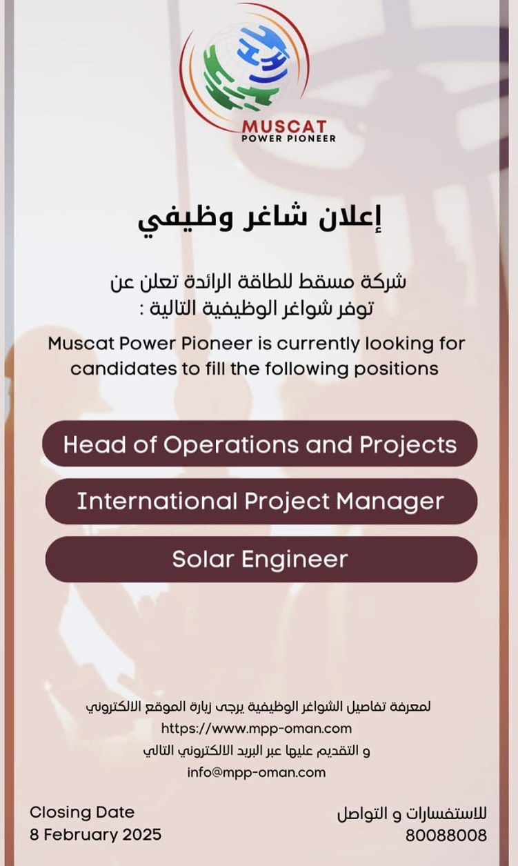 شركة مسقط للطاقة الرائدة - وظائف شاغرة