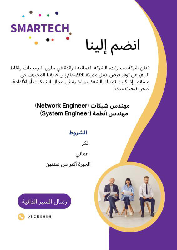 شركة سمارتك - فرص وظيفية ( مهندس شبكات + مهندس أنظمة )