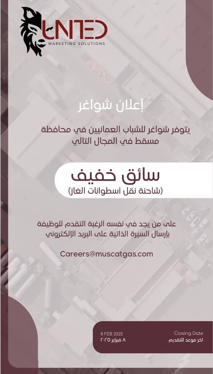 شركة رائدة في مسقط - وظيفة شاغرة ( سائق خفيف )