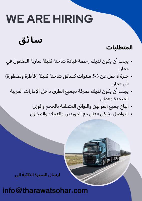 شركة ثروات صحار العالمية - وظيفة شاغرة ( سائق )