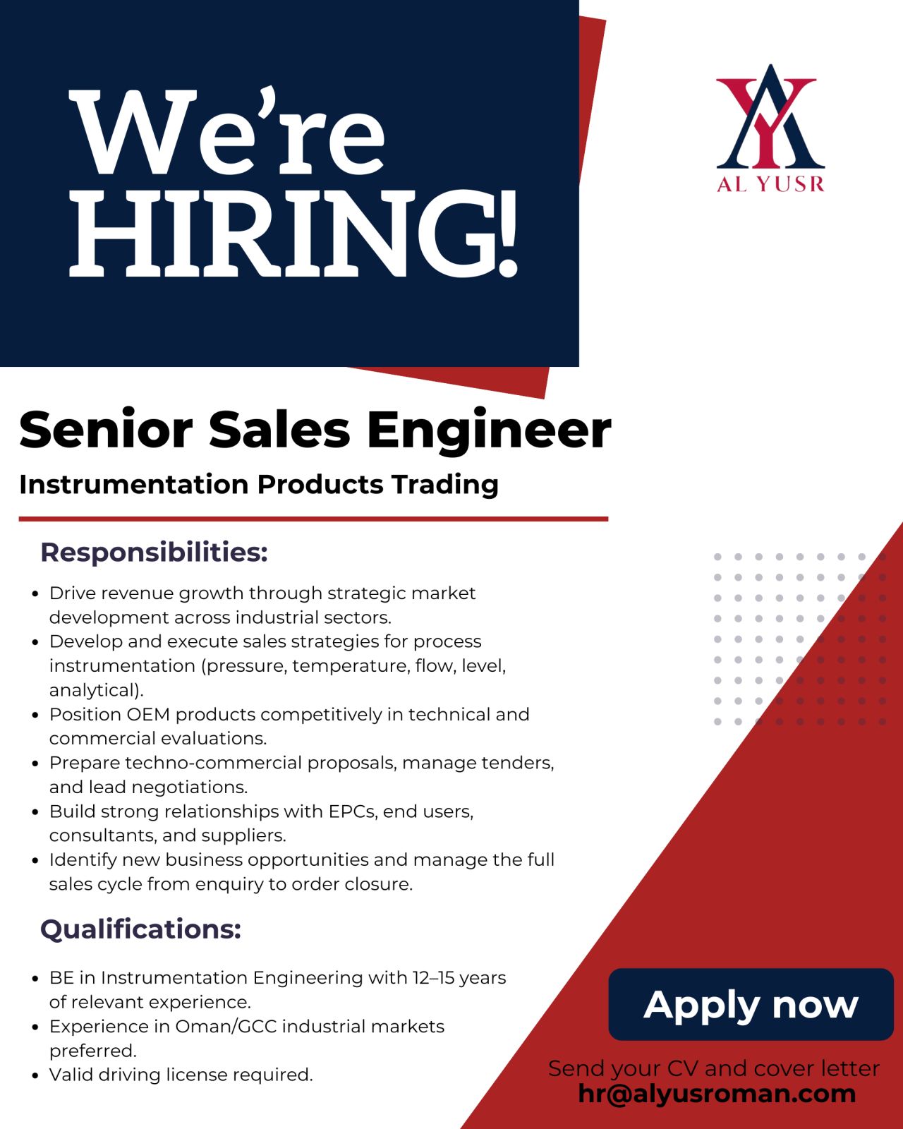شركة اليسر الدولية في مسقط - وظيفة شاغرة ( Senior Sales Engineer )