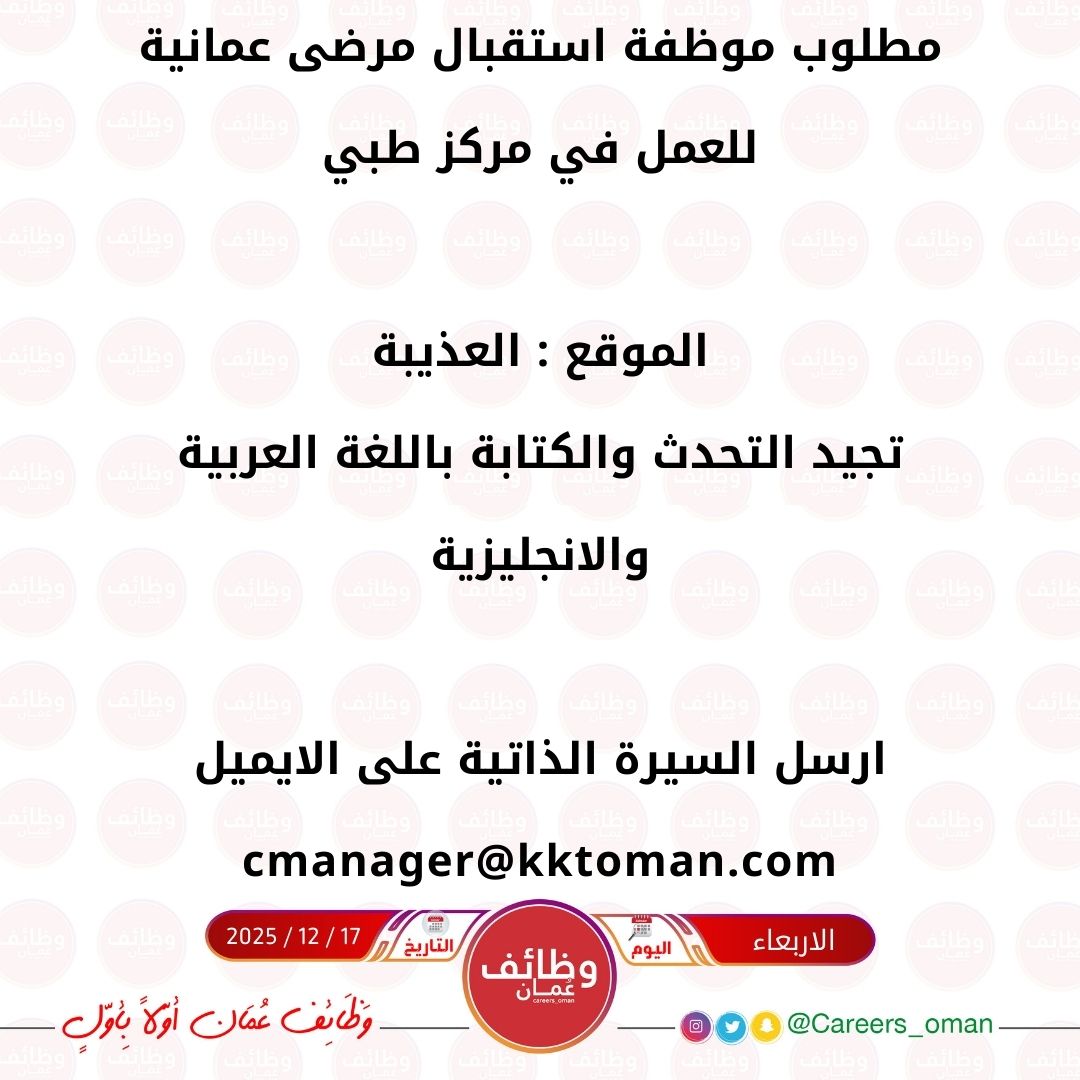مركز طبي في العذيبة - وظيفة شاغرة ( موظفة استقبال مرضى )