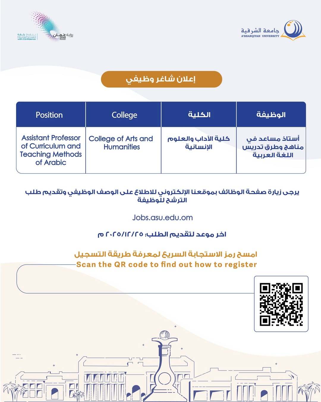 جامعة الشرقية - وظيفة شاغرة ( أستاذ مساعد في مناهج وطرق تدريس اللغة العربية )