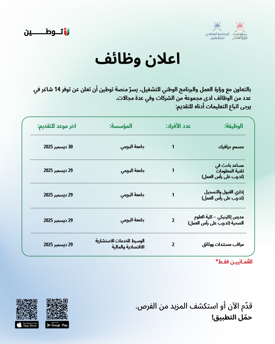 منصة توطين - توفر 14 شاغر في عدد من الوظائف لدى مجموعة من الشركات وفي عدة مجالات