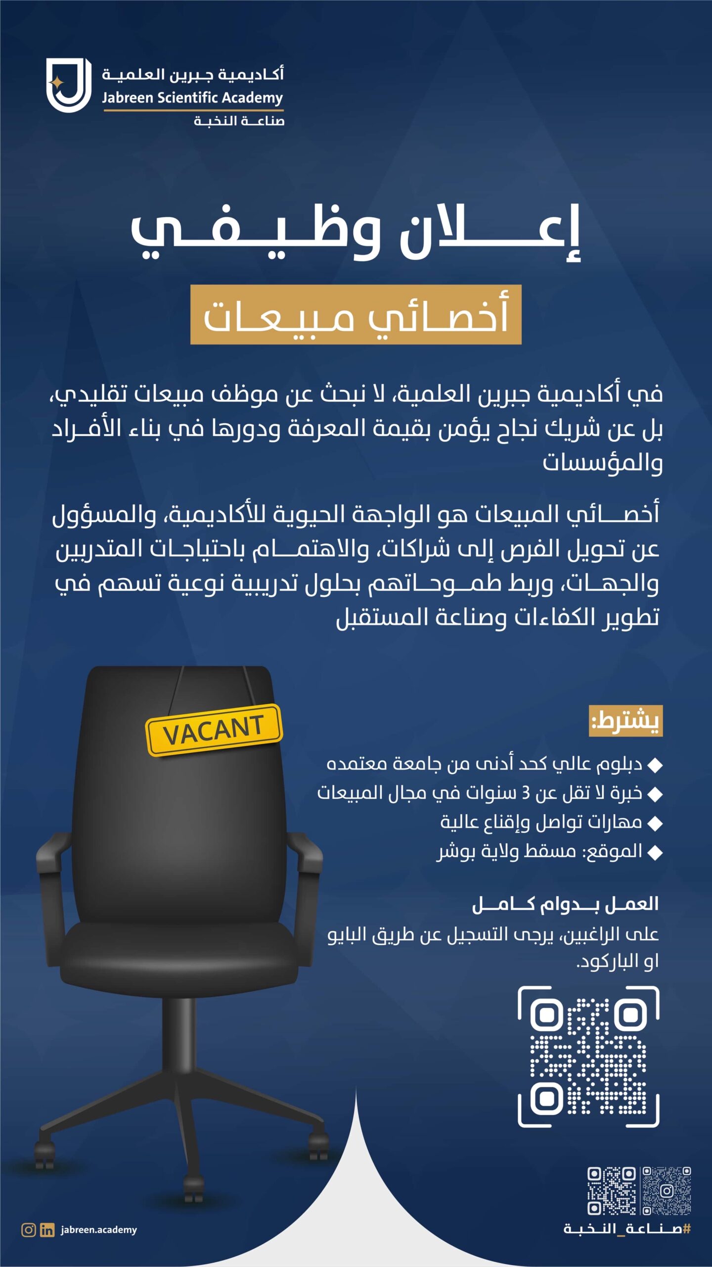 أكاديمية جبرين العلمية في بوشر - وظيفة شاغرة ( أخصائي مبيعات )