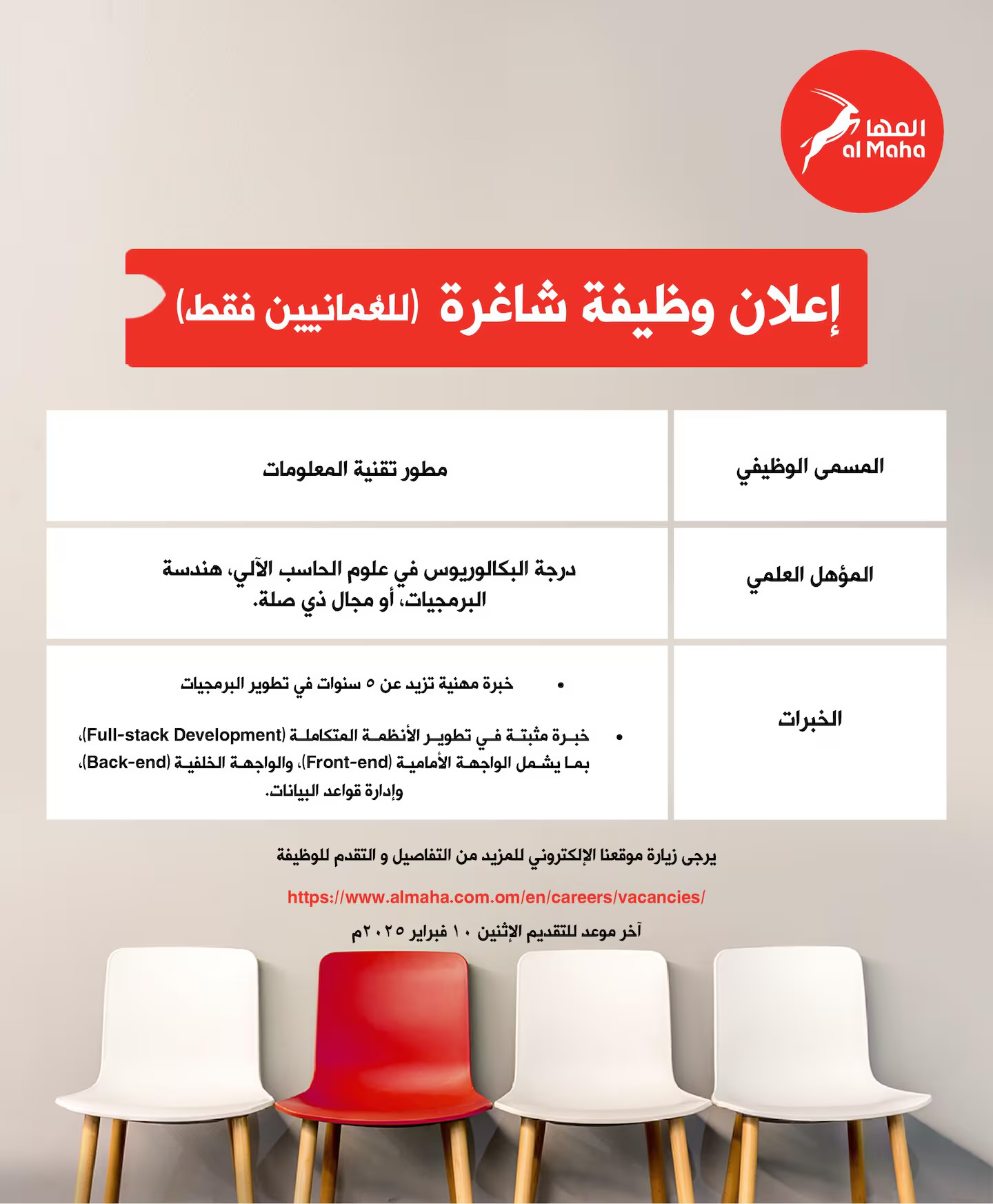 شركة المها لتسويق المنتجات النفطية - وظيفة شاغرة ( مطور تقنية المعلومات )