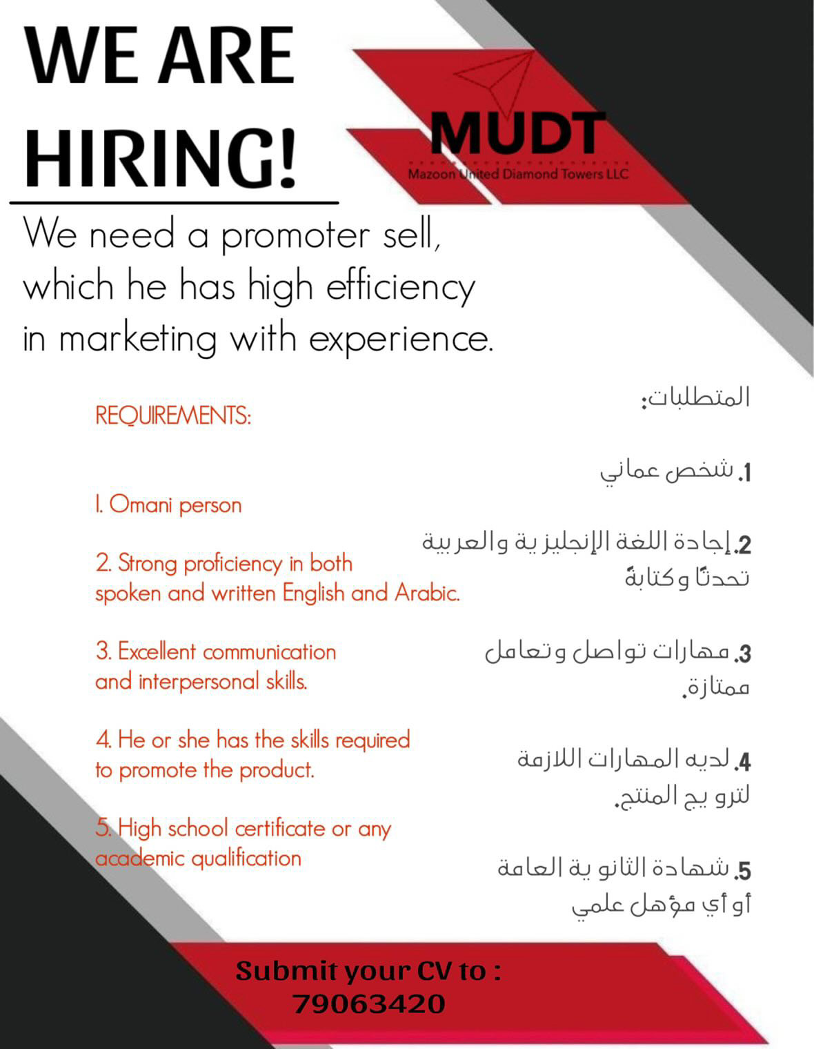 شركة أبراج مزون الماسية المتحدة - وظيفة شاغرة في مجال الترويج للمنتجات