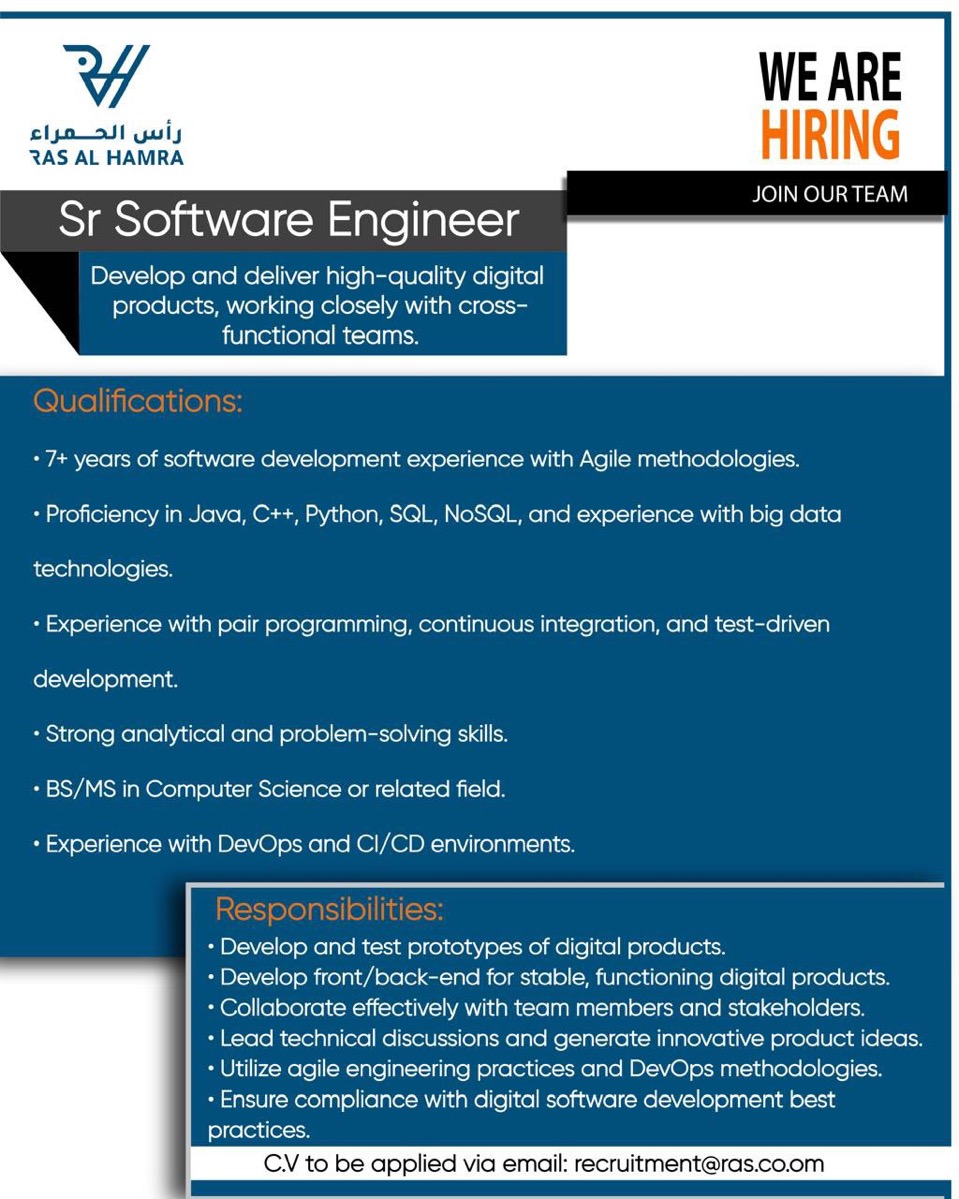 شركة رأس الحمراء - وظيفة شاغرة ( Sr Software Engineer )