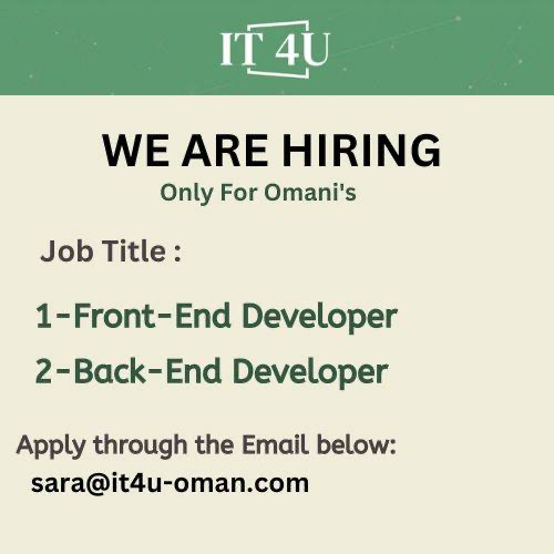 شركة IT4U في مسقط - وظائف شاغرة ( Front-End Developer / Back-End )