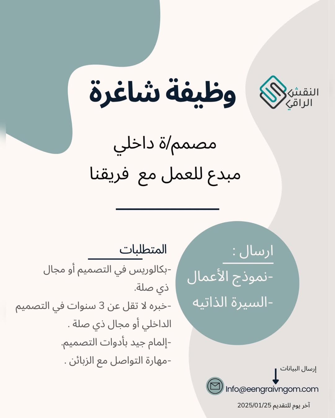شركة النقش الراقي في بركاء - وظيفة شاغرة ( مصمم/ة داخلي )