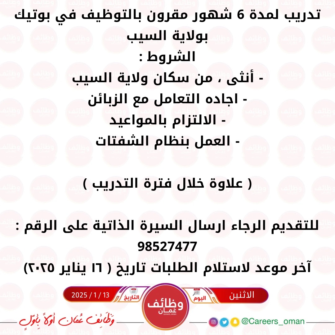 بوتيك بولاية السيب - تدريب لمدة 6 شهور مقرون بالتوظيف