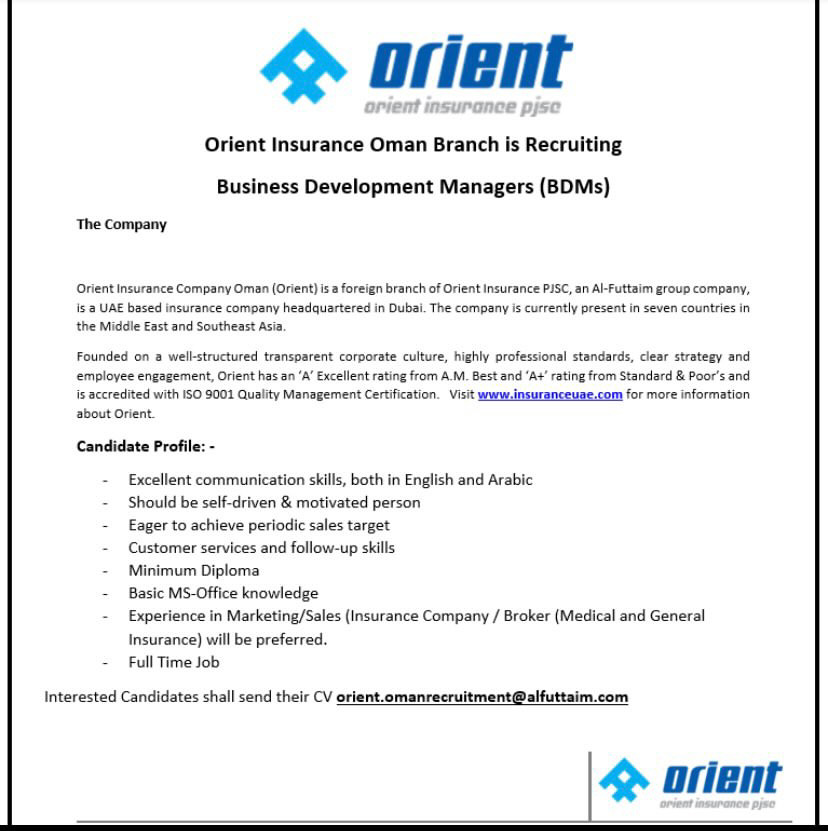 شركة أورينت للتأمين - وظيفة شاغرة ( Business Development Managers )