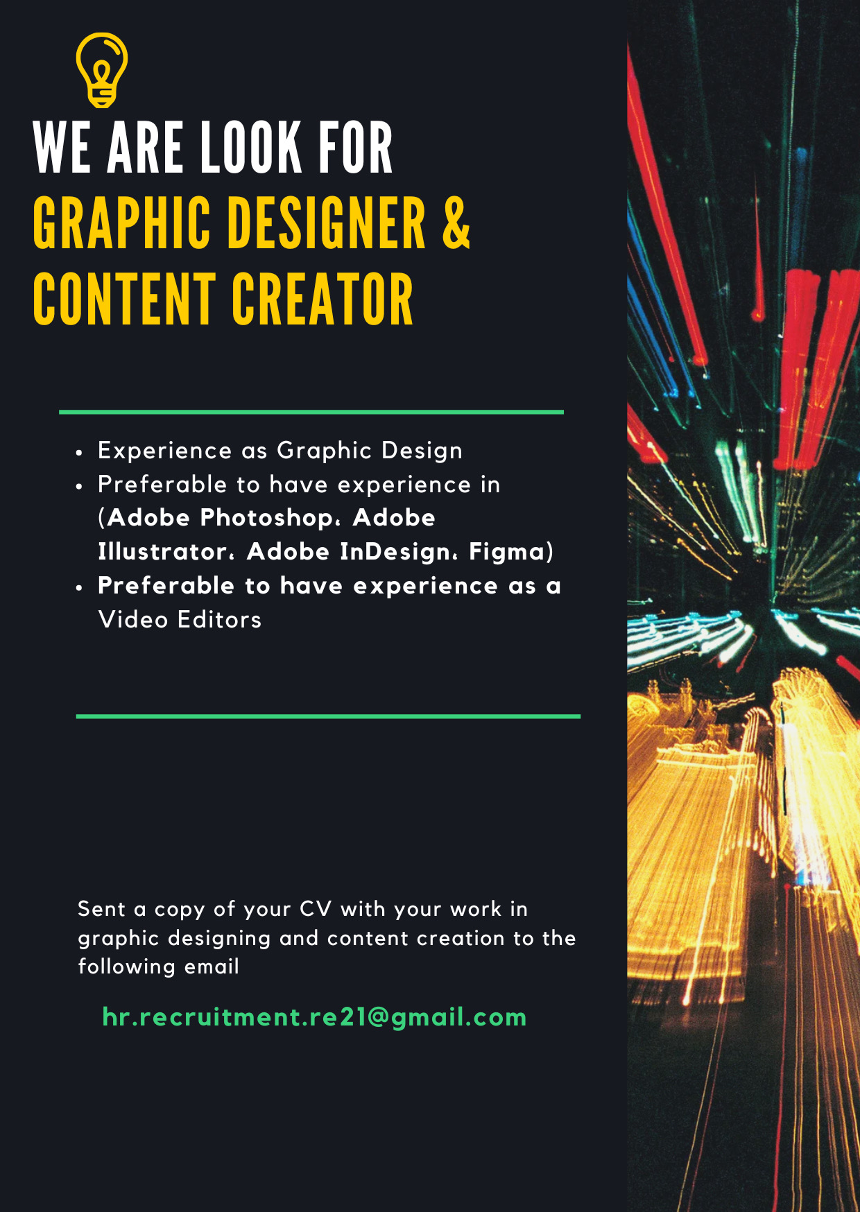 احدى الشركات الرائدة - وظيفة شاغرة ( مصمم جرافيك وصانع محتوى )