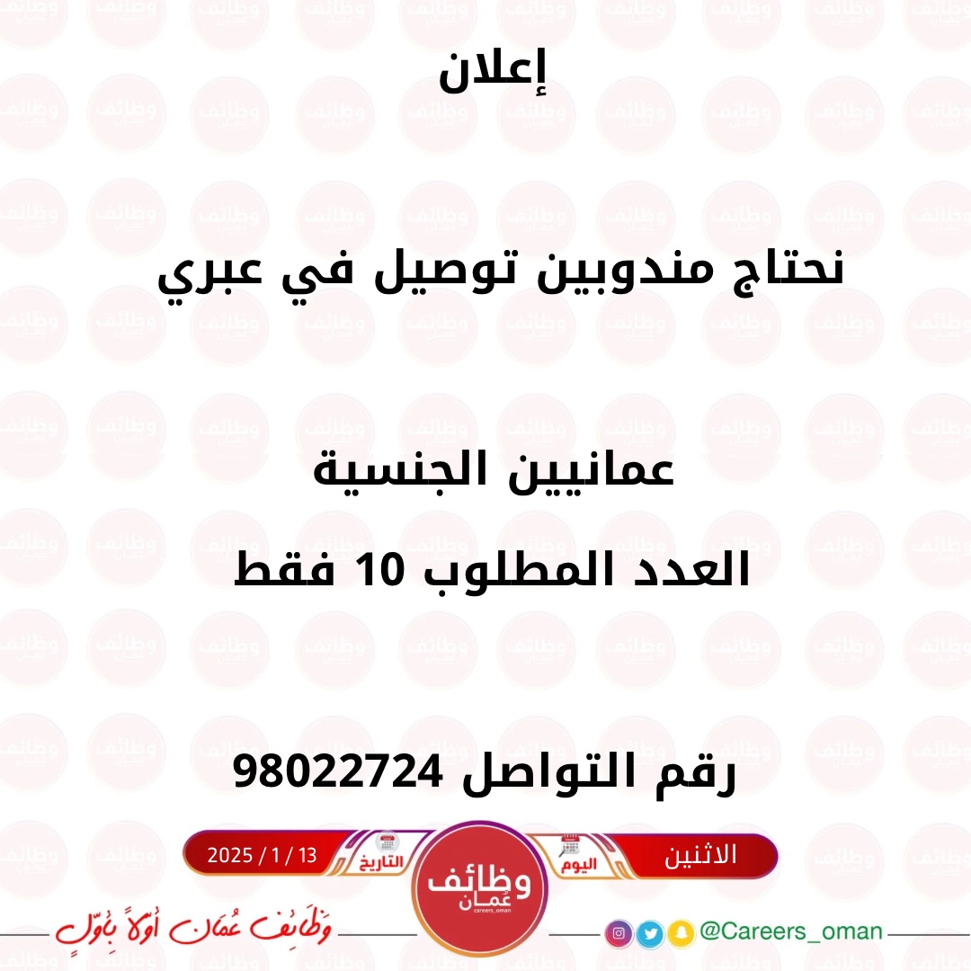 شركة توصيل في عبري - فرصة وظيفية ( مندوبين توصيل )