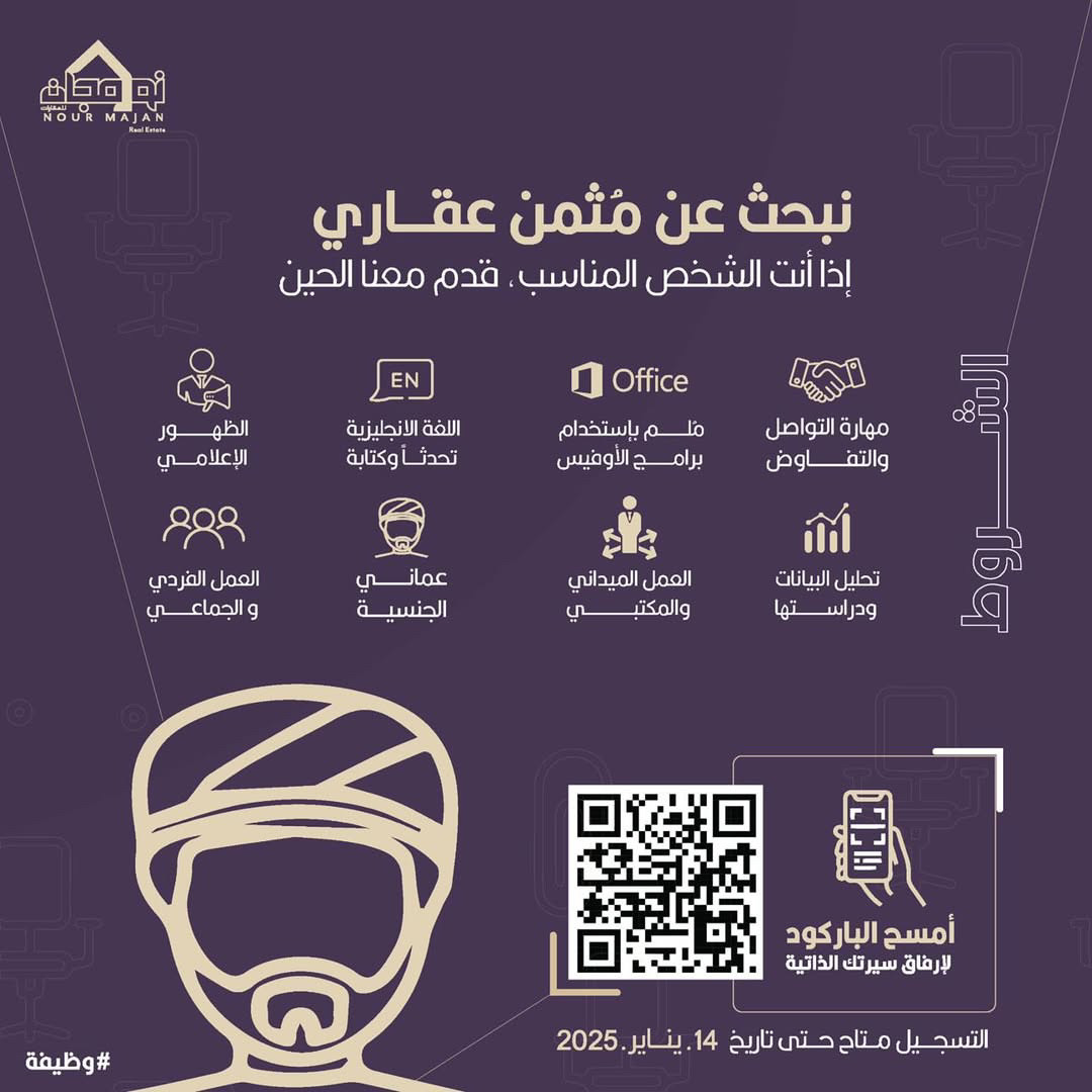 شركة نور مجان للعقارات - وظيفة شاغرة ( مثمن عقاري )