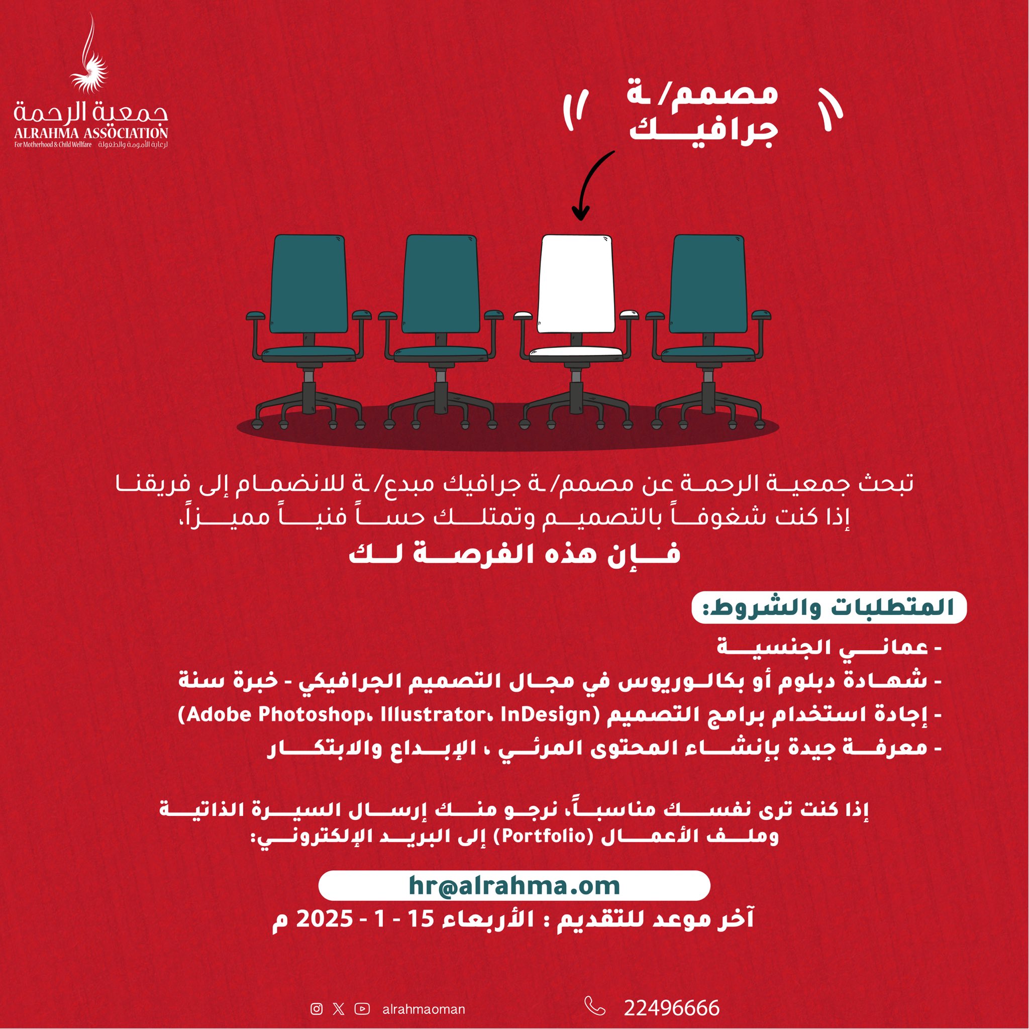 جمعية الرحمة - وظيفة شاغرة ( مصمم جرافيكي )