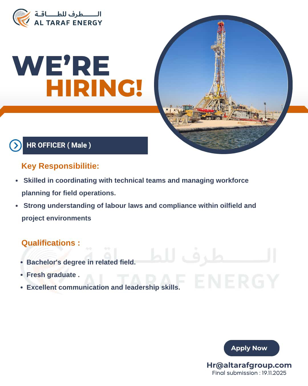 شركة الطرف للطاقة والأعمال - وظيفة شاغرة للخريجين الجدد ( HR OFFICER )