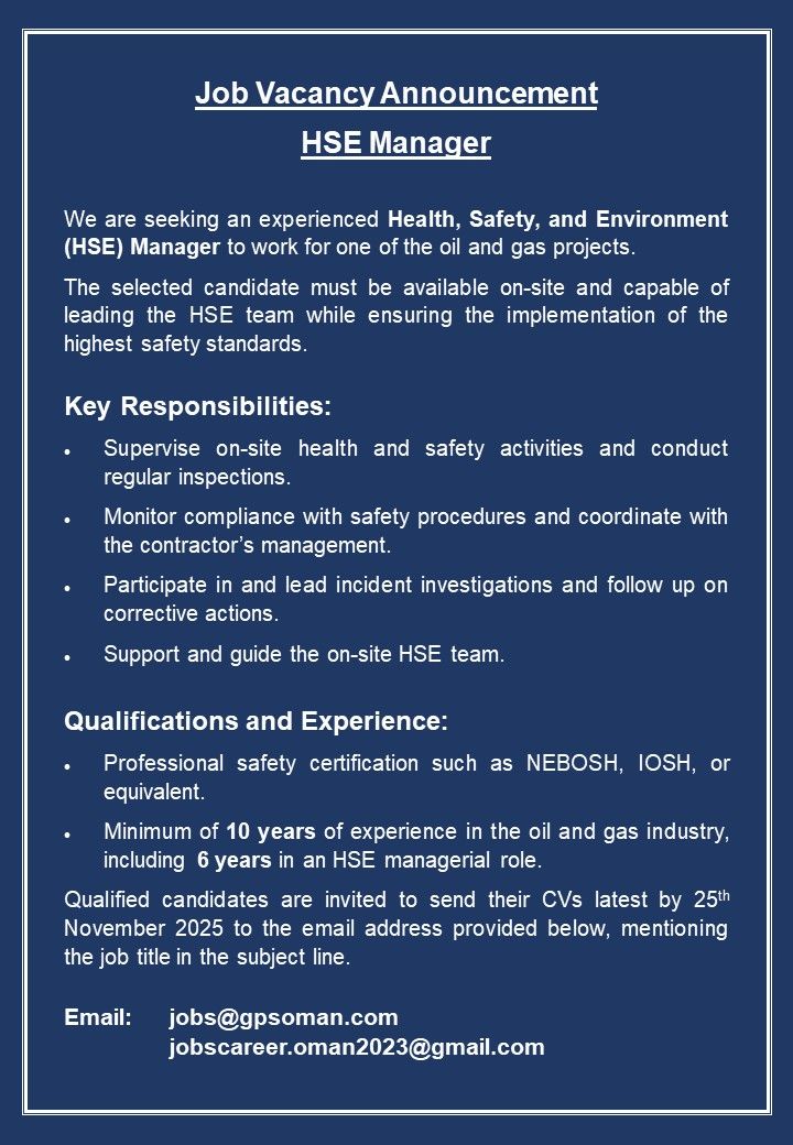 شركة جي بي اس - وظيفة شاغرة ( HSE Manager )