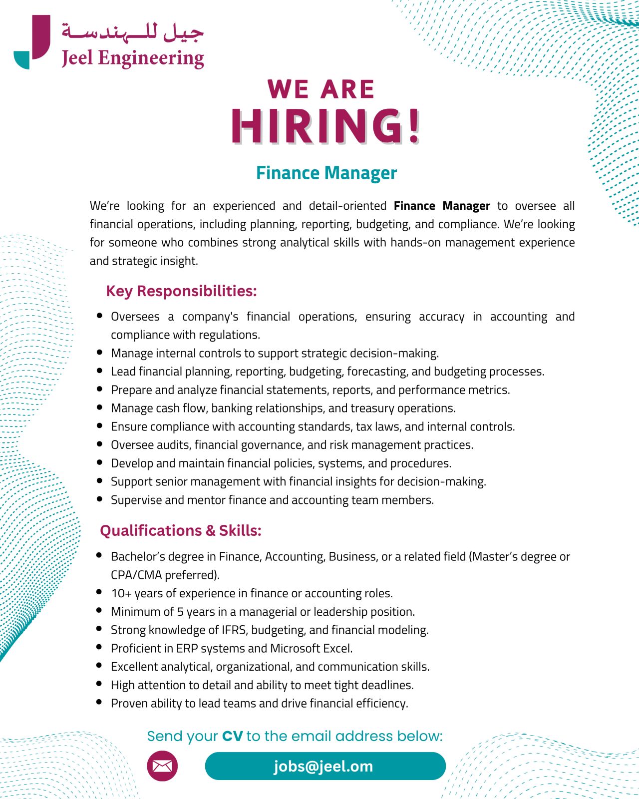 شركة جيل للهندسة - وظيفة شاغرة ( Finance Manager )