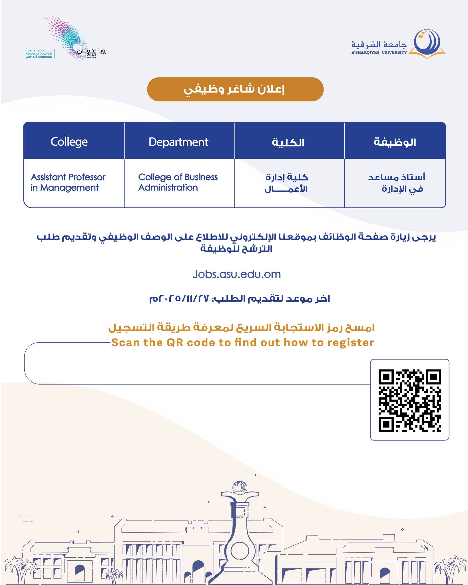 جامعة الشرقية - وظيفة شاغرة ( أستاذ مساعد في الإدارة )
