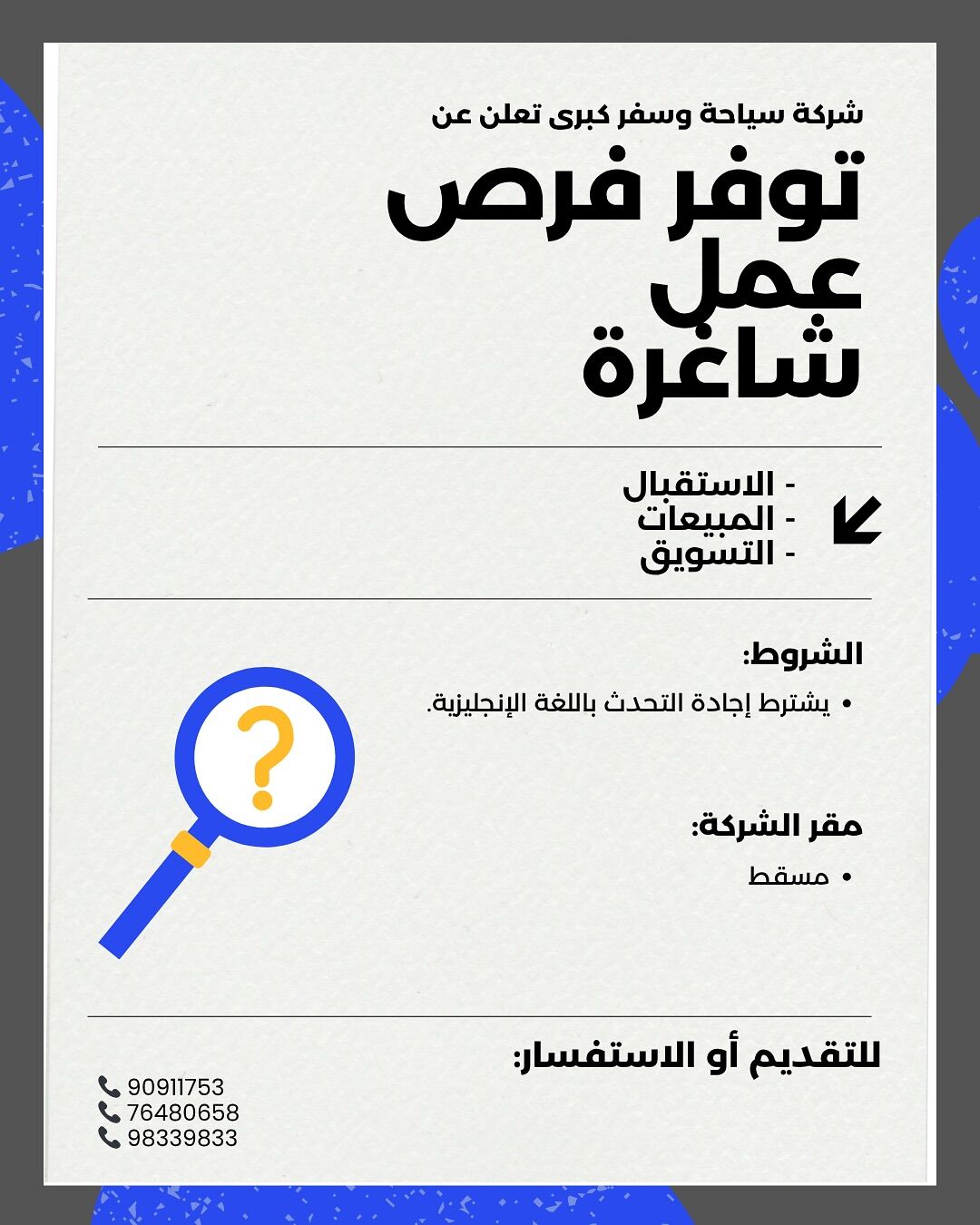 شركة سياحة وسفر كبرى في مسقط - 3 وظائف شاغرة