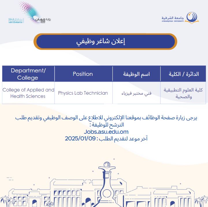 جامعة الشرقية - وظيفة شاغرة ( فني مختبر فيزياء )