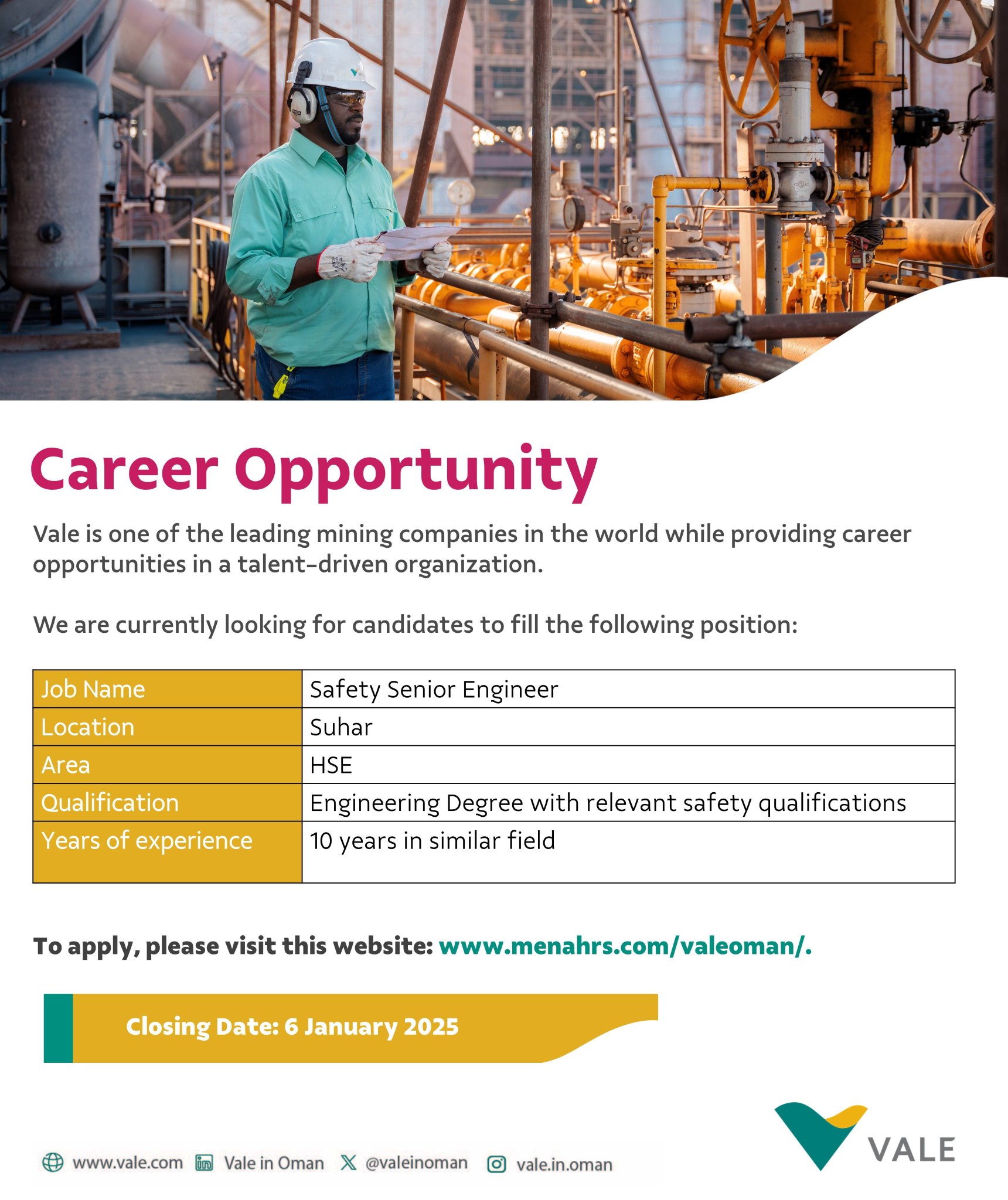 شركة فآلي عمان - وظيفة شاغرة ( Safety Senior Engineer )