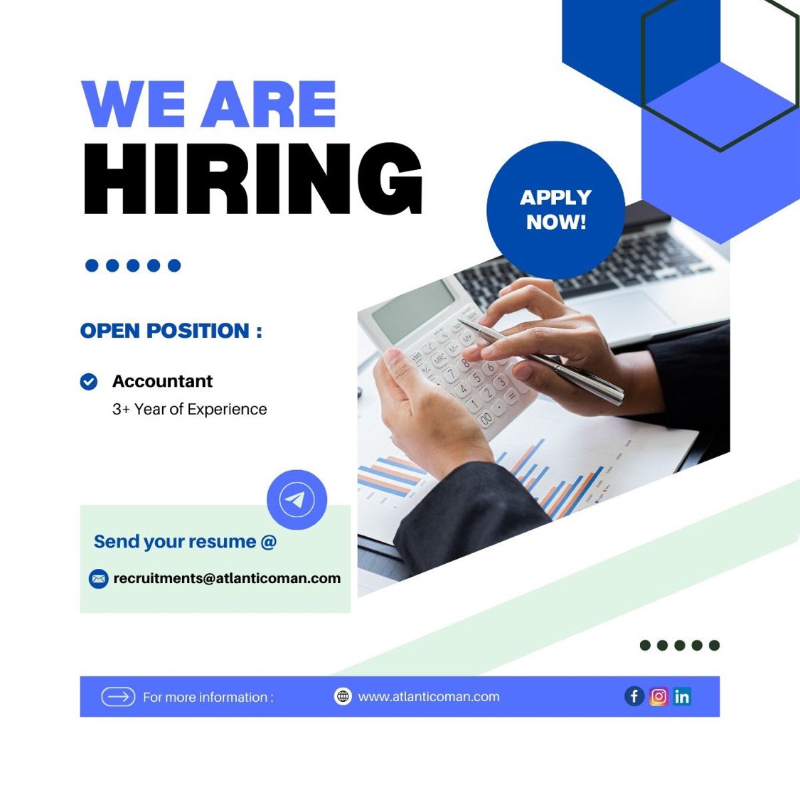 شركة الأطلسي للإنشاءات - وظيفة شاغرة ( محاسب )